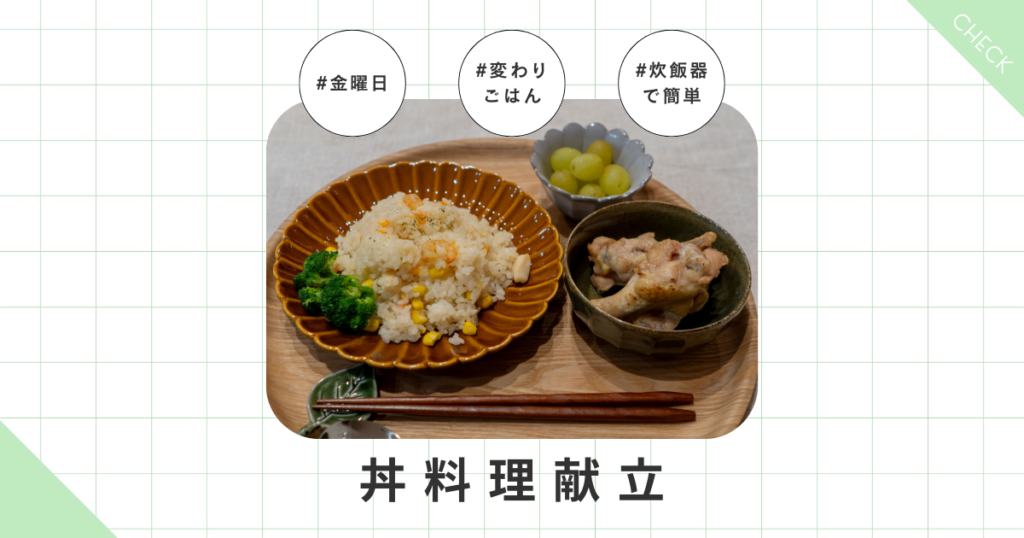 金曜日の献立【テーマ:丼(変わりごはん)料理】