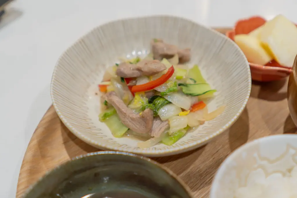 【食材】豚肉、白菜、玉ねぎ、パプリカ、青梗菜