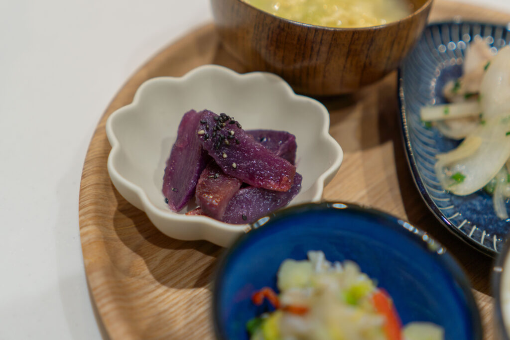 いつものさつまいもを紫芋に変えるだけで、食卓がぐっと秋らしくなりますね。