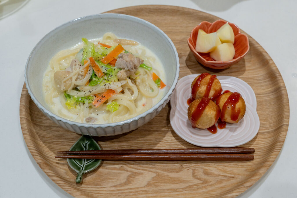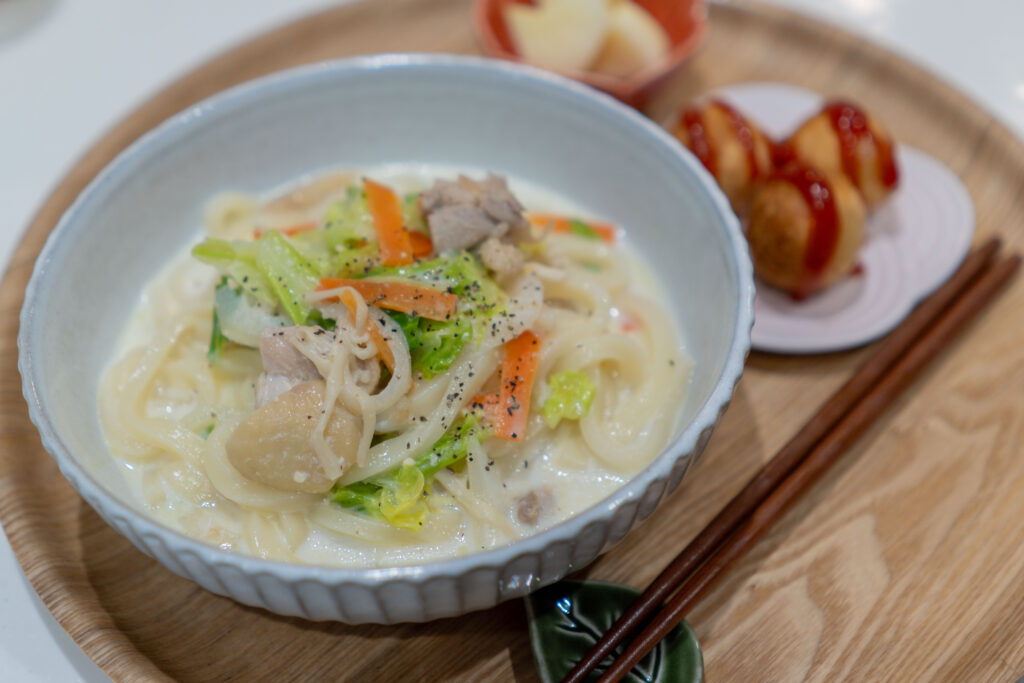 帰りが遅い日は麺で時短!コクうま豆乳味噌うどんの簡単ごはん